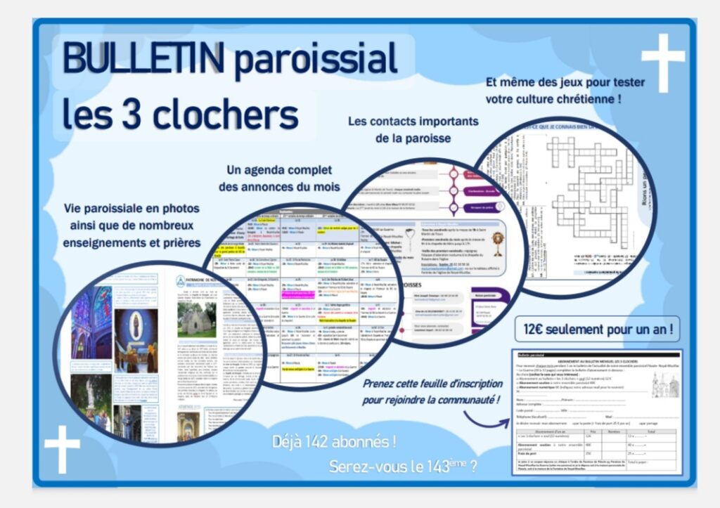 Pour recevoir chaque mois pendant 1 an le bulletin de l’actualité de notre ensemble paroissial Péaule- Noyal-Muzillac – Le Guerno (10 à-12 pages), téléchargez le bulletin d’abonnement ci-dessous :